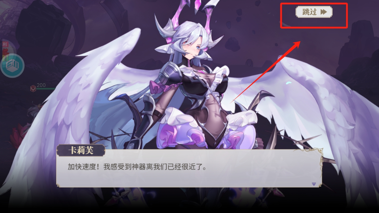 2、接着,在游戏剧情播放时,如果不想观看,可以点击右上角的“跳过”按钮,快速跳过剧情动画。