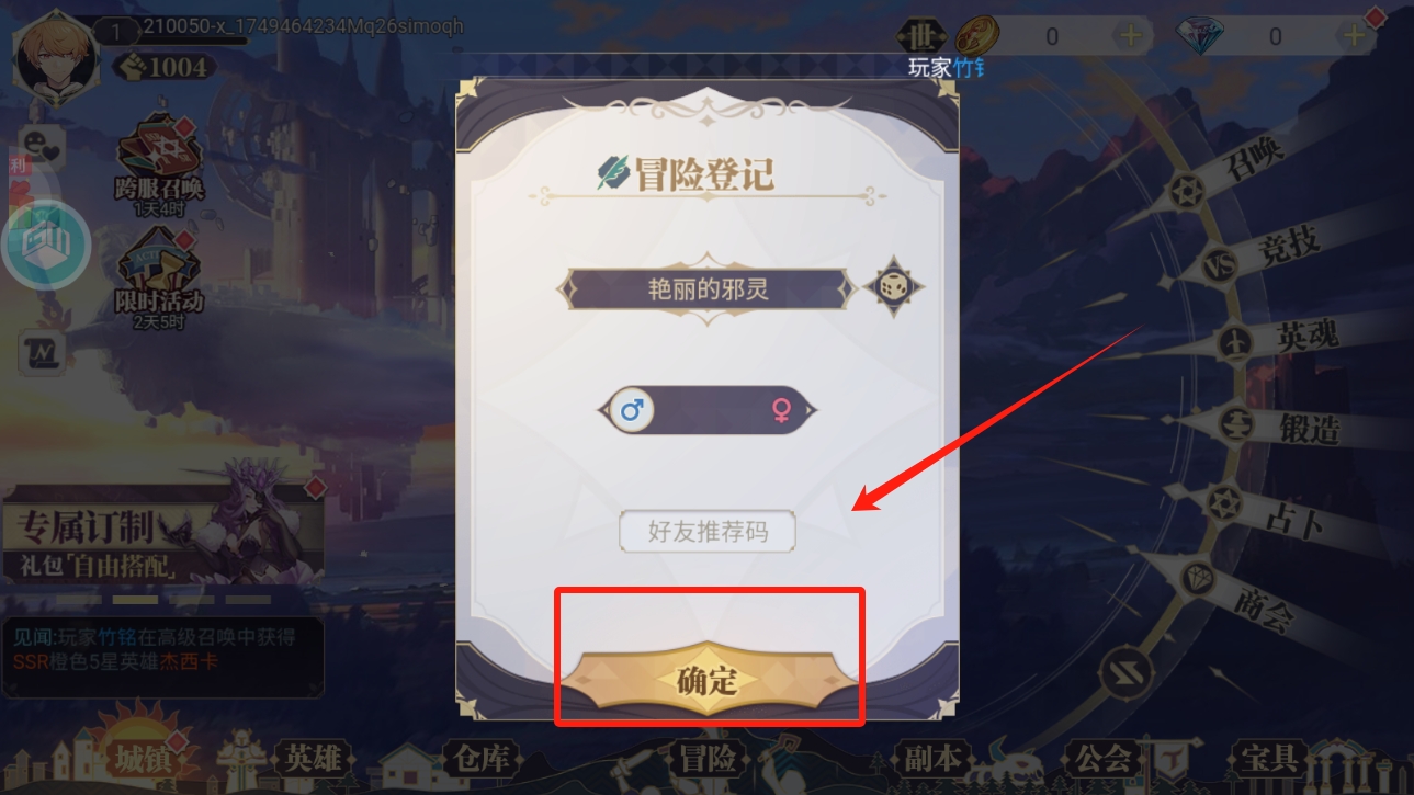 3、最后,在冒险登记界面,输入相关信息后,点击“确定”按钮完成登记。这样你就可以开始你的转生冒险之旅了。