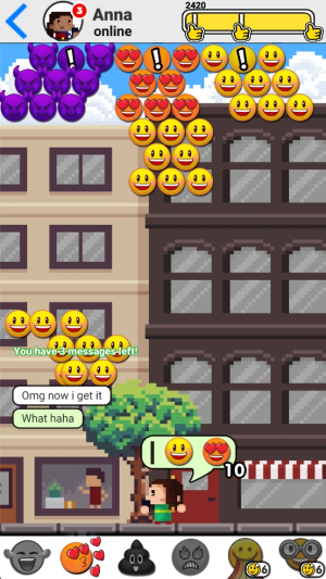 1、复古像素画风:采用经典像素风格画面,角色与表情符号造型复古可爱,搭配明快色彩,带来怀旧视觉体验。