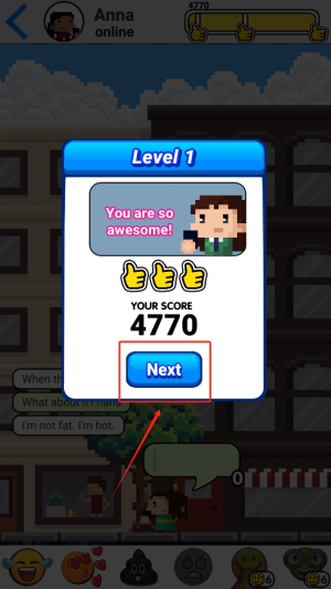 3、查看成绩:完成关卡后,点击“Next”查看得分和评价。