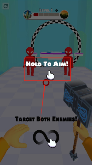 2、规划战斗策略:滑动屏幕控制英雄走位,靠近敌人时点击屏幕挥动锤子攻击,优先解决威胁较大的敌人。
