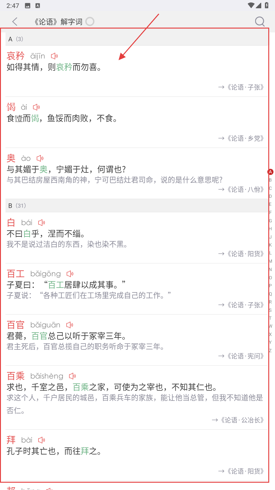 3、古籍例证查询:引入《论语》《诗经》《说文解字》等二十余部经典古籍中的例证,通过生动鲜明的例证读懂字词释义,提升学习趣味性。