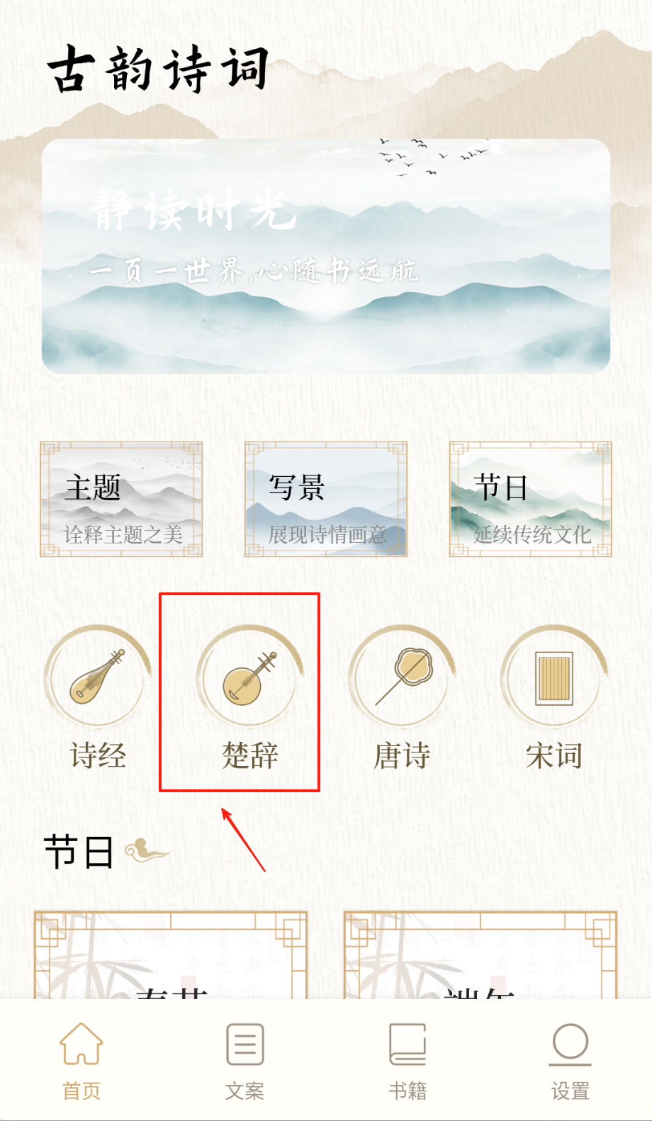 1、典籍库选择楚辞触发智能笺注,生僻字自动标注说文解字释义与中古音拟构。