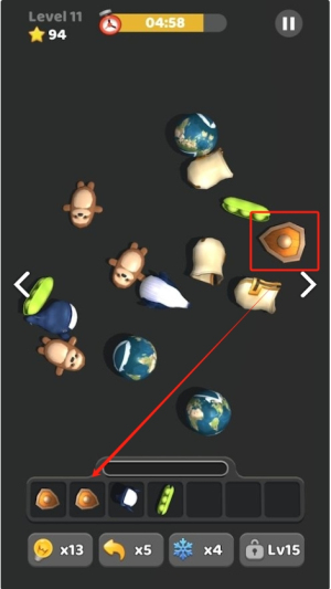 3、进行游戏操作:点击并拖动相同的物品即可进行消除。