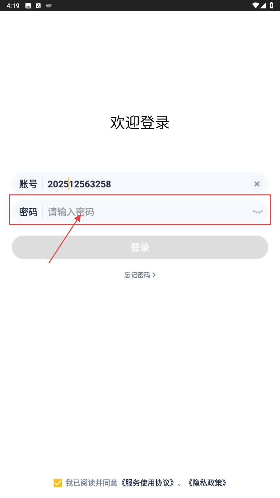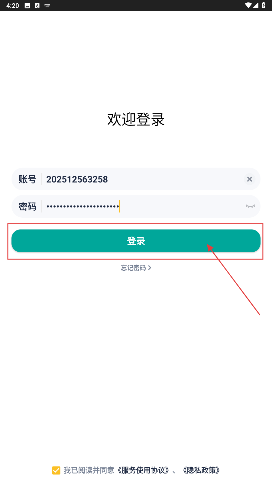 3、勾选协议,点击【登录】,完成账号登录任务。