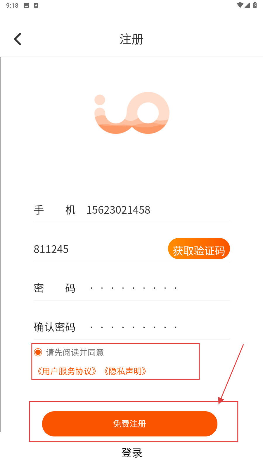3、勾选协议,点击【免费注册】,完成账号注册任务。