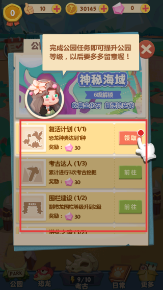 3、关注游戏中的任务系统,完成相应任务可获得奖励,推动公园等级提升,解锁更多区域和玩法,持续丰富游戏体验。