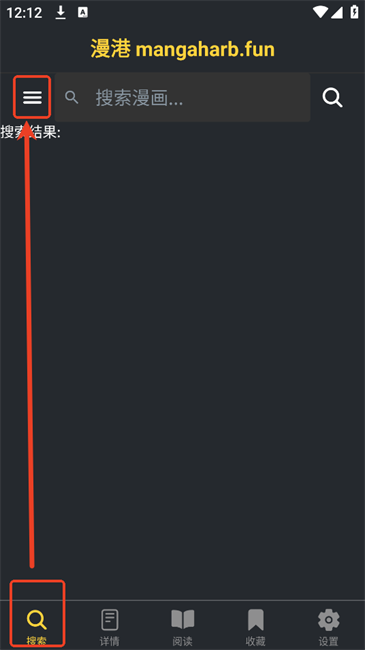1、打开应用,在【搜索】页点击左上角菜单图标,进入源站选择环节。
