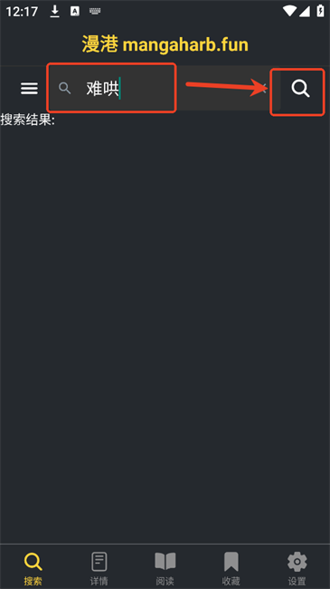 3、返回搜索栏,输入漫画名,点击搜索图标,即可进行观看。