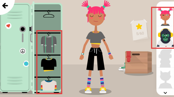 3、进入衣柜界面,查看可更换的服装和头像,通过完成任务(如星星进度5/60)解锁更多外观选项,个性化角色形象。