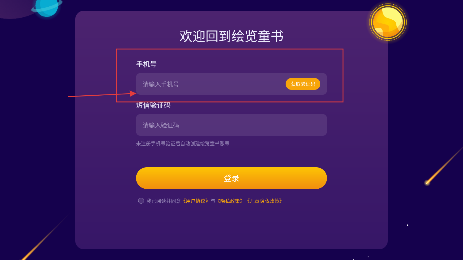1、打开应用登录页,在【手机号】输入框填入号码。
