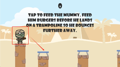 2、操作游戏:点击屏幕投喂给木乃伊汉堡,让他跳得更远。
