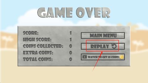 3、重新开始:游戏结束后点击“REPLAY”按钮重新开始。