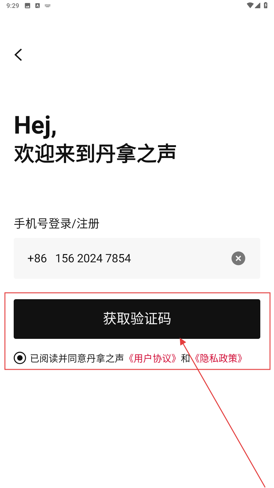 3、完成验证码输入,完成APP登录/注册任务(因手机号未注册时此流程为注册)。