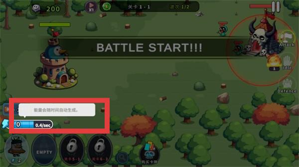 2、战斗中,牢记能量会随时间自动生成(如0.4/sec),把握能量恢复节奏,适时召唤防御塔或单位。