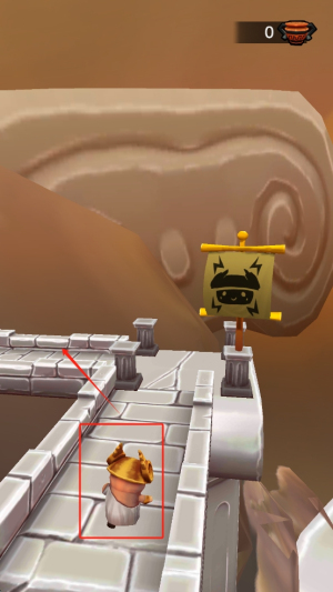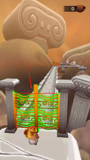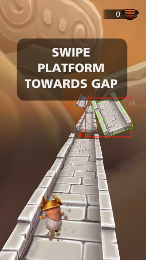 2、操控角色移动:通过触屏滑动控制角色躲避障碍,遇到沟壑时点击跳跃,面对低矮障碍则下滑通过。