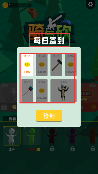 1、游戏伊始,务必坚持每日签到(如“每日签到”活动),获取丰富奖励(第一天+300金币等),积累游戏资金,用于购买武器或道具。