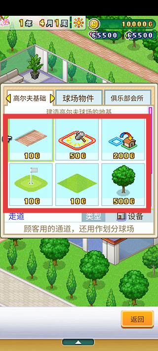 3、关注不同设施的功能和价格,合理规划资源,逐步完善高尔夫球场的建设,吸引更多顾客,提升游戏中的经营效益。