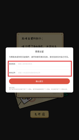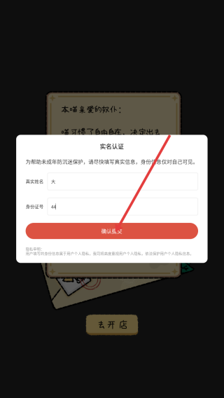1、进入游戏,点击【实名认证】。