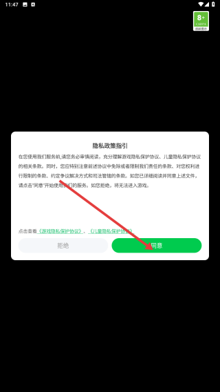 1、进入游戏,点击【同意】。