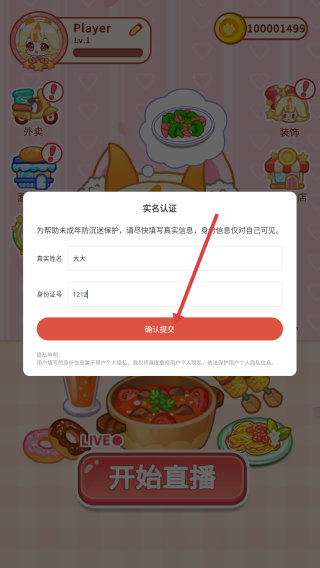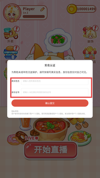 1、进入游戏,点击【实名认证】。