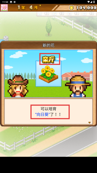 3、成功设置花田后,根据提示(如“可以培育‘向日葵’了!”),在花田种植新花卉,持续丰富农场经营内容,提升农场收益与发展水平。