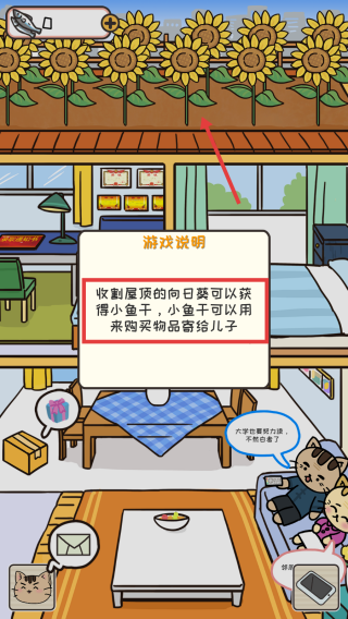 1、游戏开始,留意屋顶向日葵区域的提示,按照指引操作,收割向日葵获取小鱼干,这是游戏内重要资源。