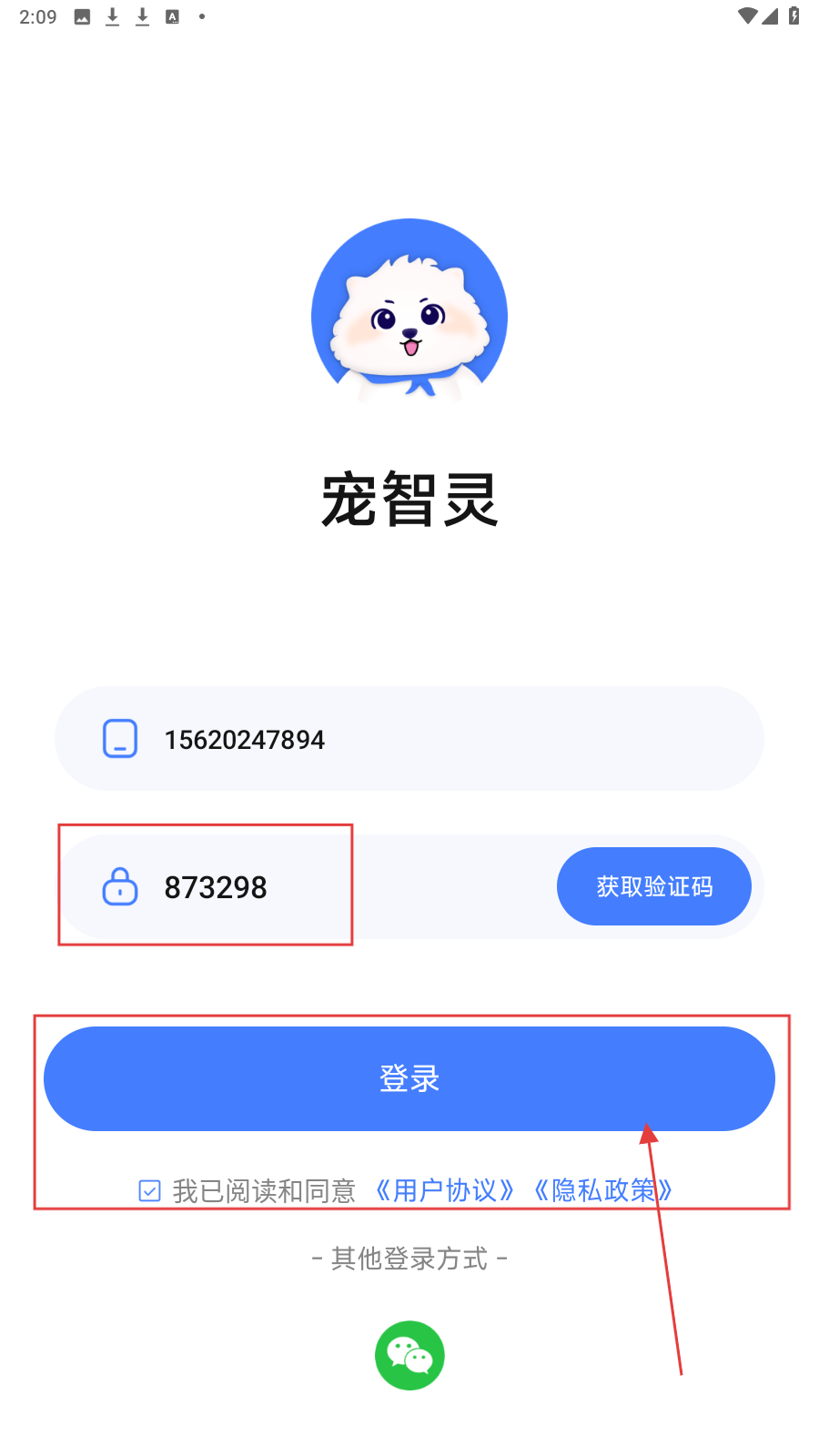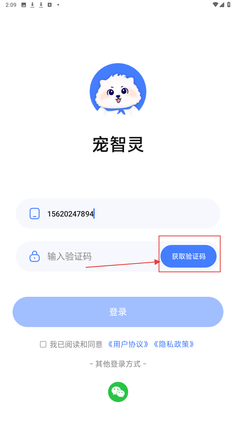 1、打开APP登录页,在【输入手机号码】框填入号码。