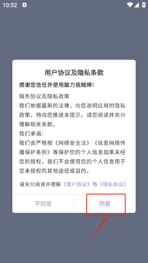 1、同意用户协议:打开应用后,阅读并同意《用户协议及隐私条款》。