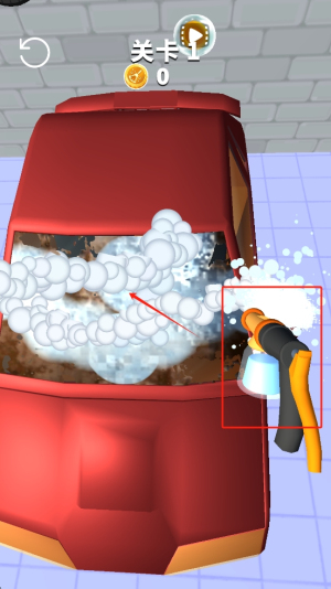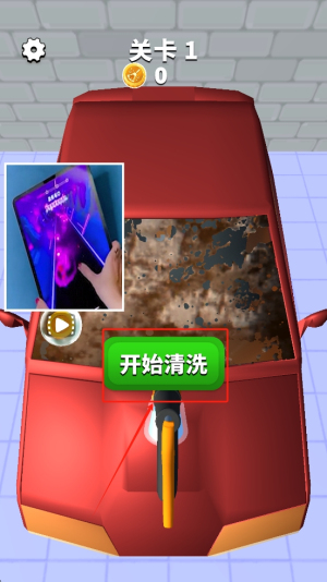 2、开始游戏:选择一个游戏,例如“关卡1”,点击“开始清洗”按钮进入游戏。