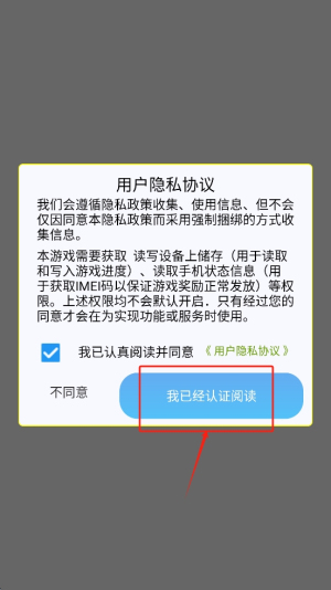 1、同意隐私协议:阅读并勾选同意《用户隐私协议》,然后点击“我已经认证阅读”按钮。