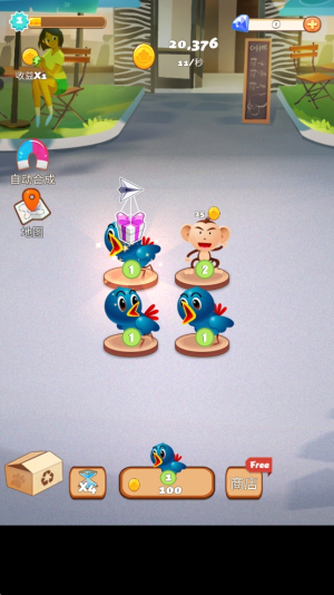 1、开启动物合成:进入游戏后,在动物园内找到相同的小动物,通过触屏拖拽将它们合并,培育出更高级别的动物。
