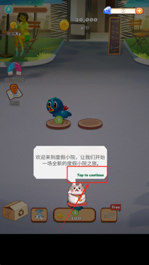1、开始游戏:点击屏幕上的“Tap to continue”按钮,开始游戏旅程。