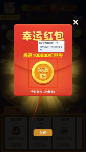 3、领取红包:当幸运红包出现时,点击“领取”按钮,获取额外的游戏奖励。