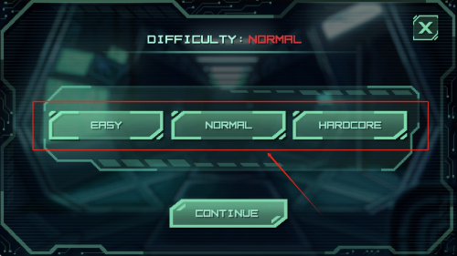 2、如何选择难度:选择“EASY”、“NORMAL”或“HARDCORE”难度并点击“CONTINUE”继续。