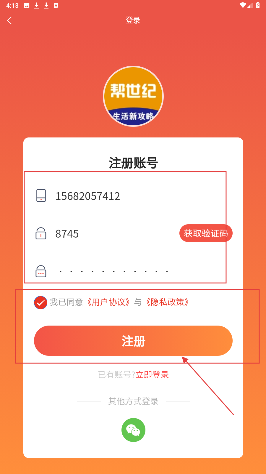 2、登录页点【立即注册】,填手机号、验证码、密码。