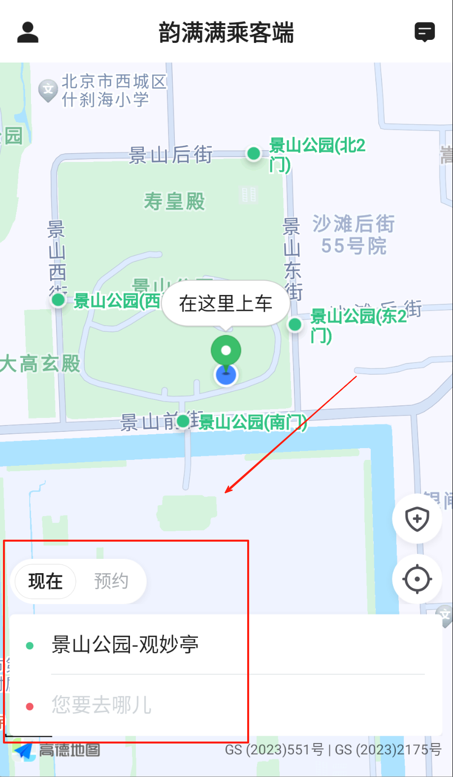 1、首页点击即时用车,自动定位当前位置,输入目的地后,系统秒级匹配3公里内合规车辆。