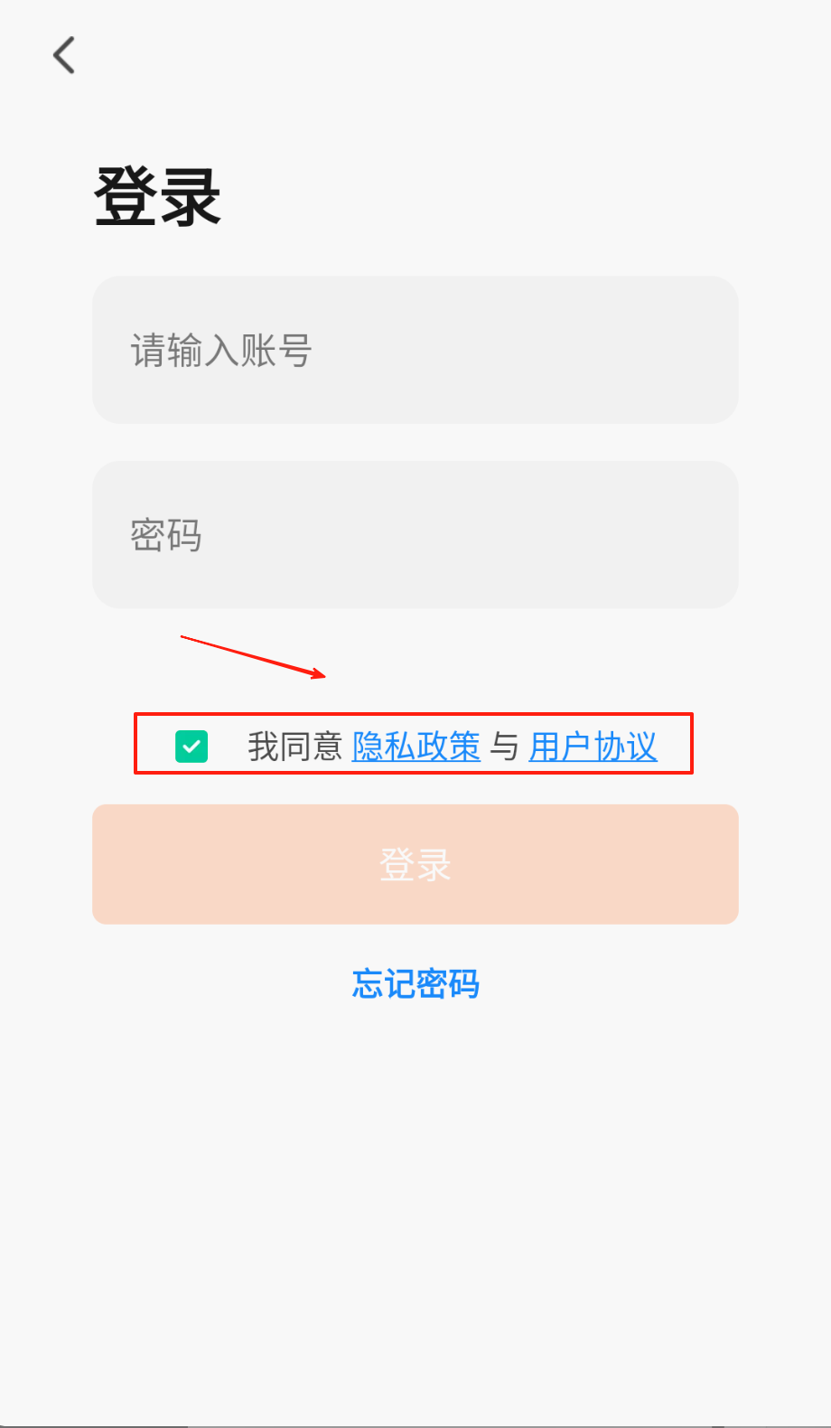 1、登录先勾选同意用户协议小框框哦,在账号框填手机号或邮箱,密码框输正确密码,最后点蓝色登录按钮就行啦。