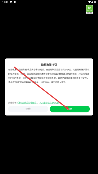 1、进入游戏,点击【同意】。