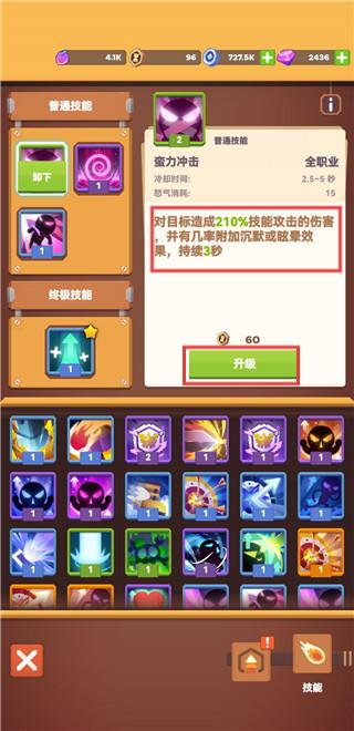 1、游戏中,优先关注技能系统,像“蛮力冲击”这样的普通技能,能对目标造成高额伤害并附加控制效果,可消耗资源升级来提升技能威力。