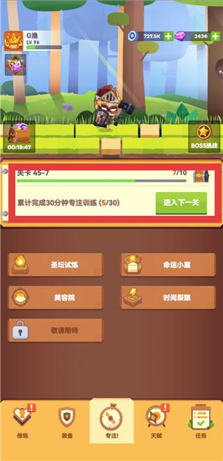 2、放置框架:离线期间勇者持续推进冒险进度,回归后收取累积资源避免专注成果流失损耗。