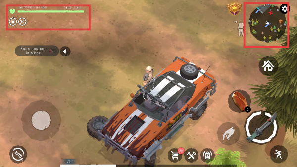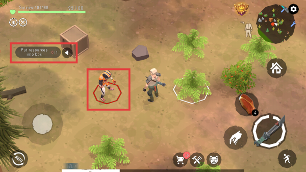 3、当任务变为“Putresourcesintobox”,寻找资源并拾取,再移动到箱子处放入资源。注意角色状态和任务进度,持续完成任务。