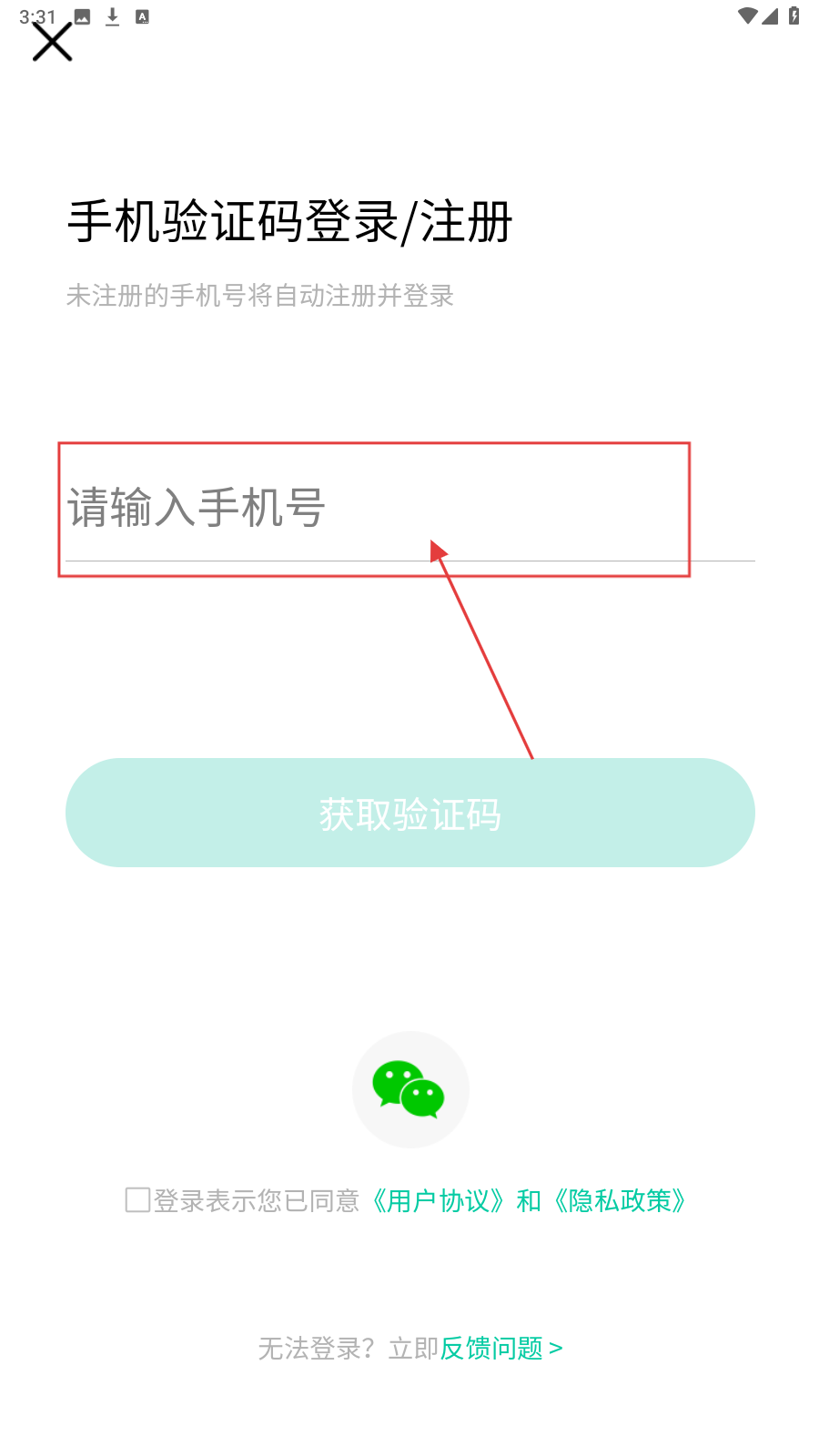 1、打开应用手机验证码登录/注册页,输入手机号。