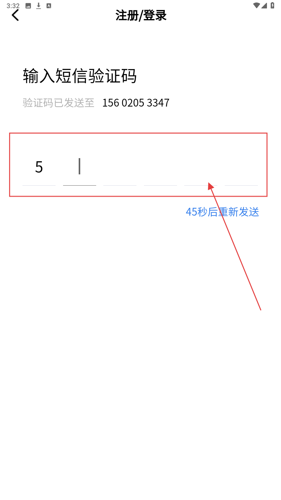 3、在【输入短信验证码】页,填收到的验证码,完成注册/登录流程。