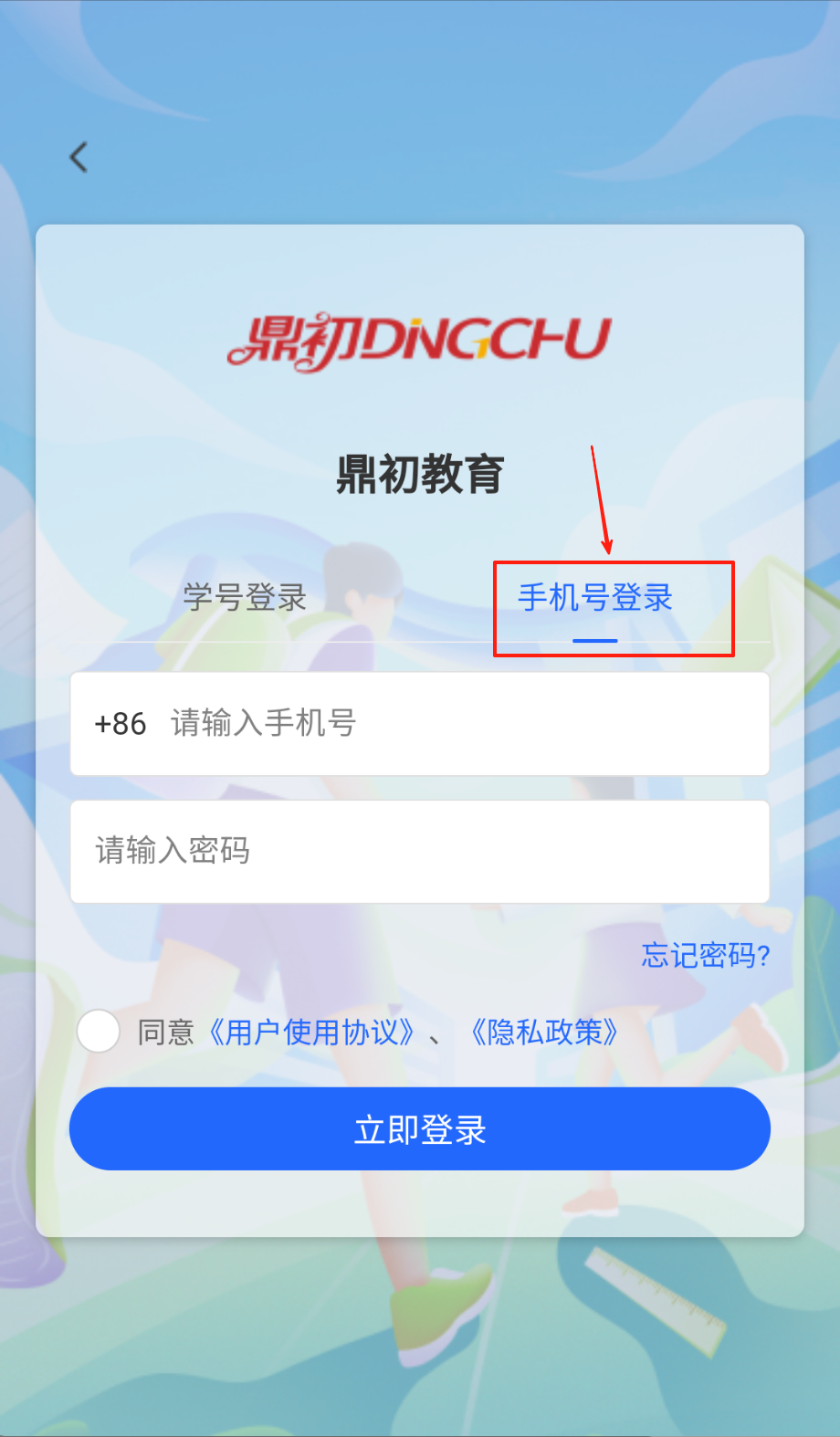 3、选手机号登录输完号码直接填密码咯,要是忘记密码点"忘记密码?"那个链接,最后勾上协议条款点击登录按钮等着进系统就好。