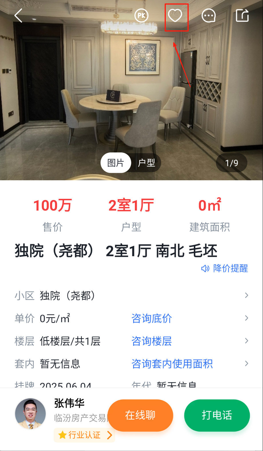 2、详情页查看户型图实景照片,收藏按钮关注心仪房源,降价提醒设置阈值自动推送消息哟。