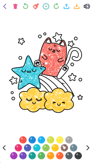 4、视觉惊喜呈现:完成涂色后,画面自动生成闪光特效,让画作瞬间灵动起来,带来满满的成就感与视觉惊喜。