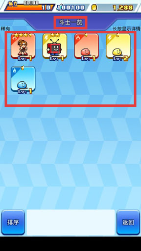 2、进入“斗士一览”界面,了解拥有的斗士(如不同形象和星级的角色),长按查看详情,熟悉斗士属性和技能,为战斗做好准备。