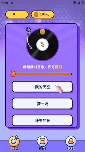 4、领取奖励进阶:答对题目即可领取红包奖励,积累分数解锁后续关卡,挑战更高难度的歌曲。