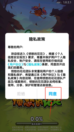 1、同意隐私政策:阅读并同意游戏的隐私政策,点击“同意”按钮继续。